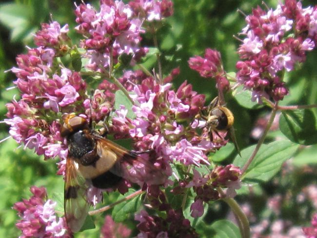 Fliege auf Oregano oder Dost, wie die Pflanze mit deutschem Namen heist.