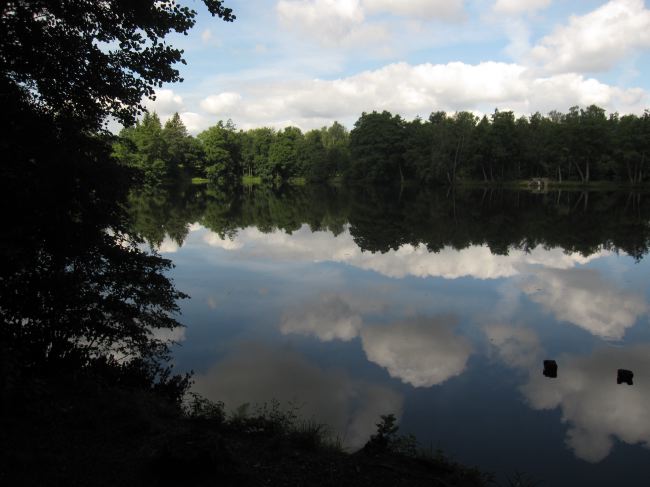 Der Himmel spiegelt sich im Stausee, was kann uns heute noch passieren.