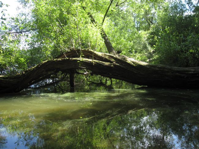 Die Weide ist ins Wasser gefallen. Ihre Äste orientieren sich neu und bilden einen kleinen Wald.