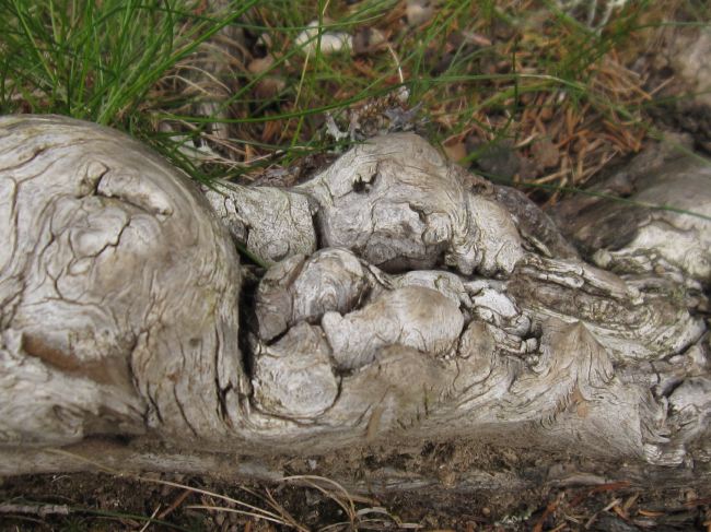 Wurzeln der Kiefern denen Wanderer und möglicherweise auch Skifahrer zugesetzt haben.