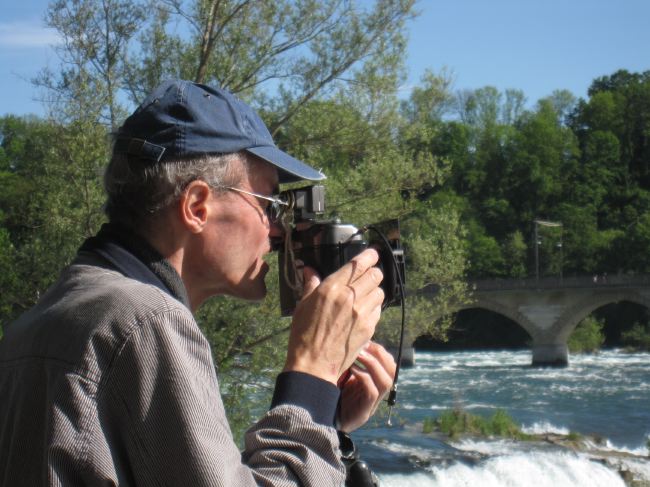 Neben all den Knipsern wie mir, zieht der Rheinfall auch Fotografen mit alter analoger Mittelformat-Technik an.