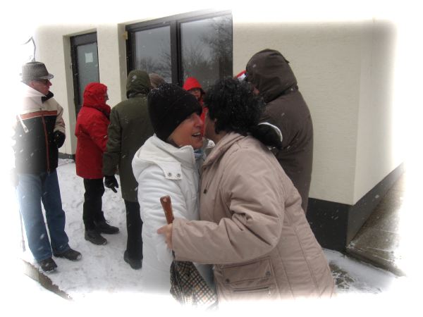 Wir treffen uns bei Schneetreiben an der Schule in Merzbach.