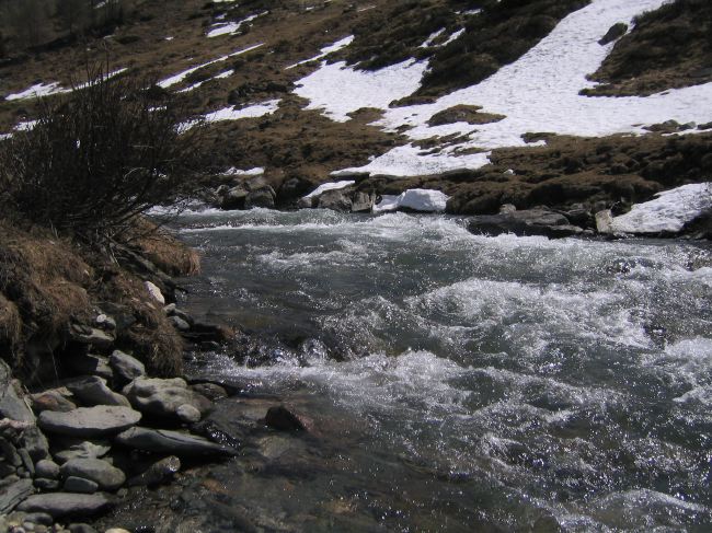 Gleich nebenan schießt das Schmelzwasser zu Tal.