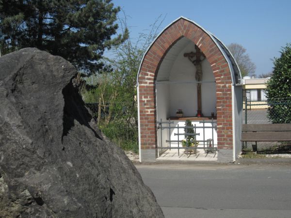 Gegenüber dem Eingang zur Burg steht dieses überdachte Wegekreuz.