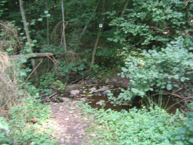 Der Bach wird durchwatet oder auf Steinen überquert.