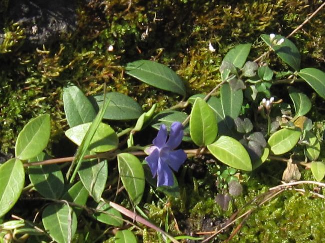 Auch dieses Immergrün wächst mit wenig Erde auf den Mauern.