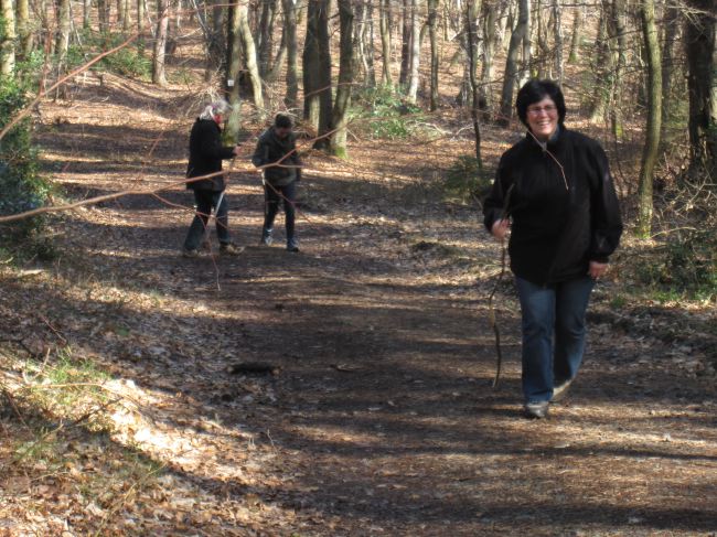 Alina, die uns diesmal begleitet, läuft erst einmal hinterher. Es liegt nicht an der Kondition. Im Wald muss sie erst einmal einen Stock schneiden und schnitzen. Das braucht Zeit.