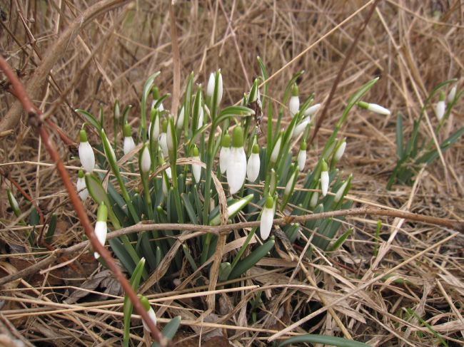 Es geht auf dem bekannten Weg durchs Zingsbachtal. Am Weg haben sich Schneeglöckchen durch das Gras geschoben.