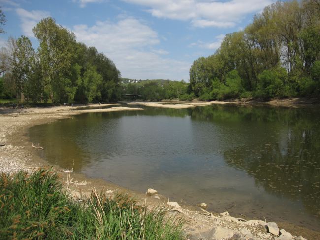 Altarm des Rheins, durch einen Deich von diesem getrennt.