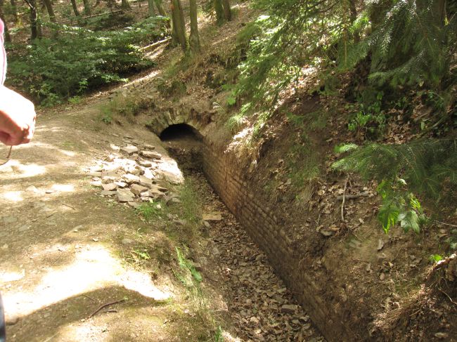 Oberhalb des Aquädukts ist die römische Wasserleitung aufgeschlossen und ermöglicht einen Einblick in die Konstruktion der Leitung. Der geringe verbleibende Querschnitt war der Grund für die Aufgabe der Leitung.