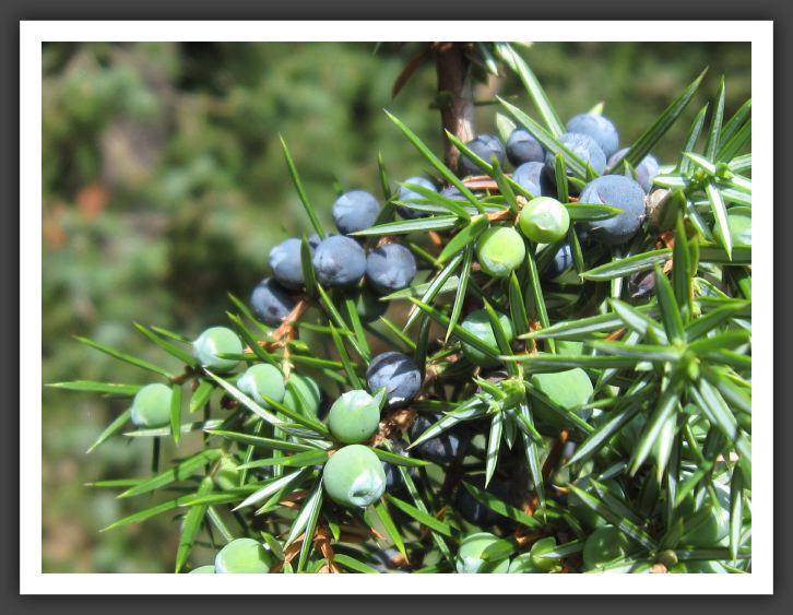 ...schon stehen wir mitten im Wacholder mit seinen Beeren in unterschiedlcihen Reifestadien.