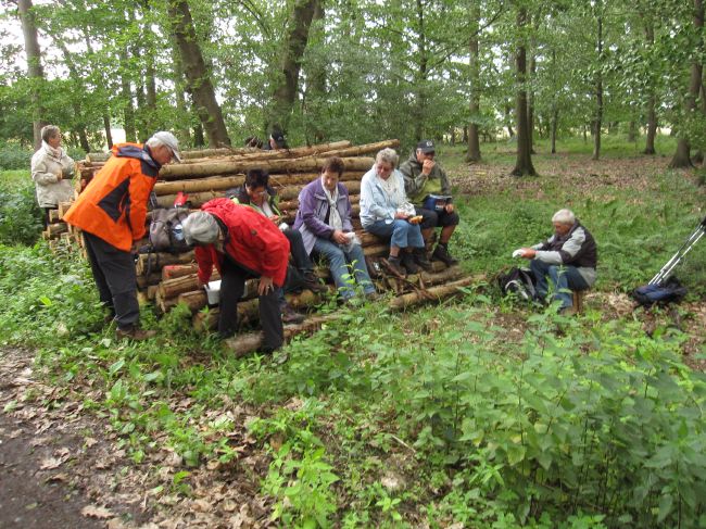In Ermangelung von Bänken muss dieser Holzstapel für unsere Mittagspause herhalten.