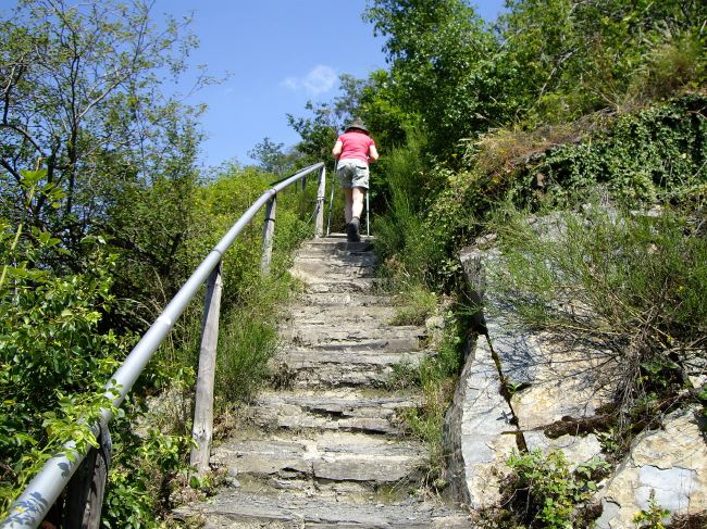 Für uns geht es schon bald einen steilen Steig bergauf.