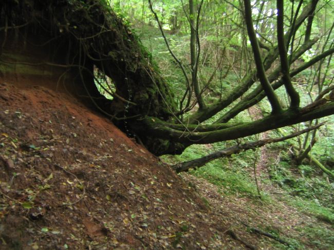 Die Erde bricht weg, aber die Bäume halten sich noch fest.