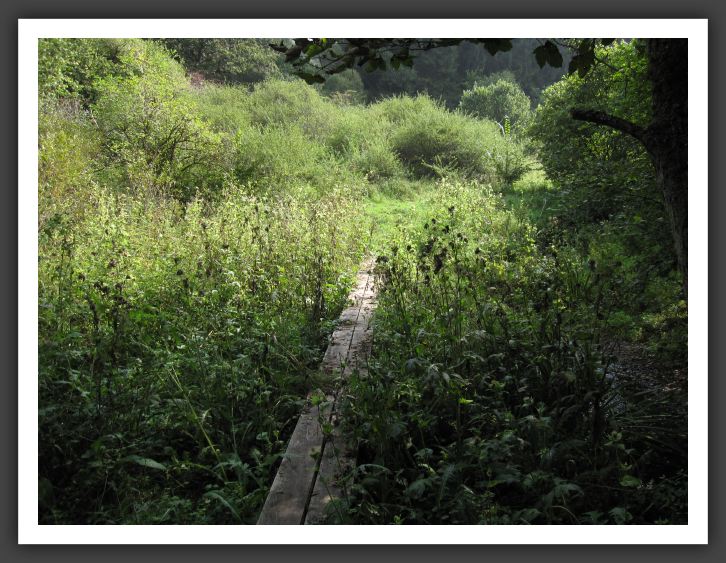 Durch das nasse, sumpfige Gelände führen manchmal Holzstege.
