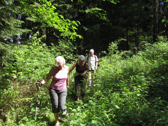 Wir suchen uns den Weg durch Gestrüpp und Brennesseln.