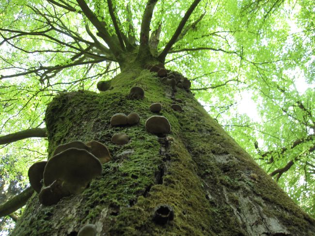 Der Anfang vom Ende: Der Pilz hat den Baumstamm besiedelt und zerstört ihn damit.